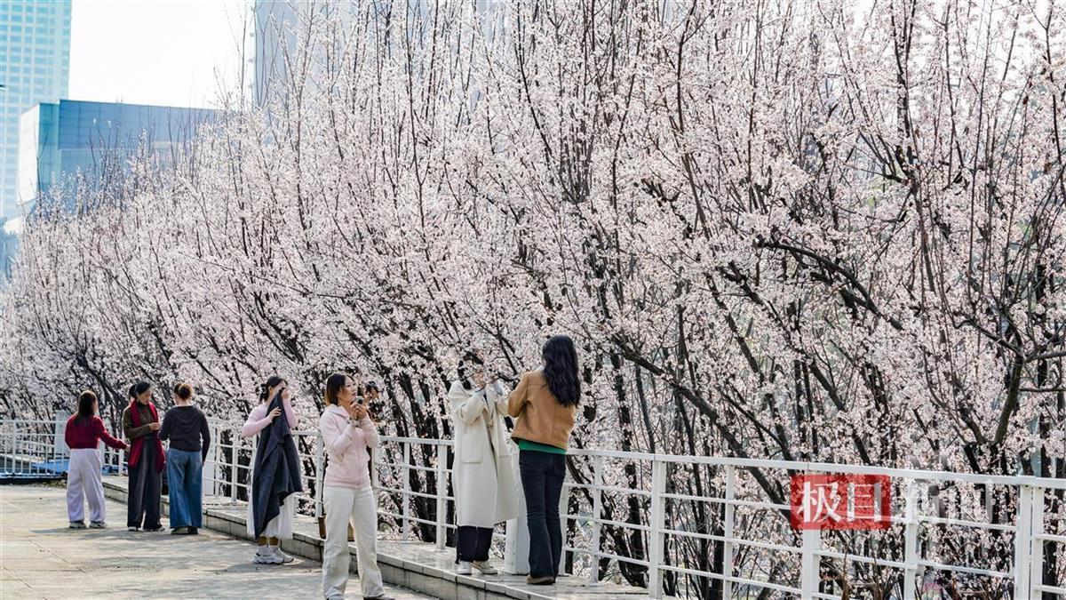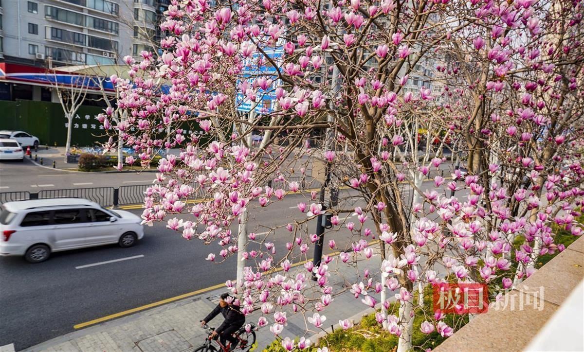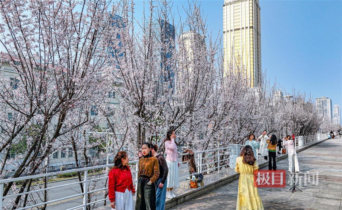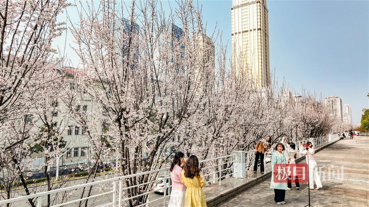 3月10日,汉口江滩戗台(水利工程中坝坡上的平台、车行说念围聚外侧的高台)尽是踏青赏花的东说念主。从汉口江滩临江门至永清门,沿江大路堤内围聚台边的满树跋扈樱花、春意茂盛的红白玉兰花延绵,东说念主们散步在戗台长廊上,不错近距离战斗到似锦,感受到的是春色跋扈,借助戗台高度差近距离不雅赏樱花、玉兰花,感受城市中心的大好春光。