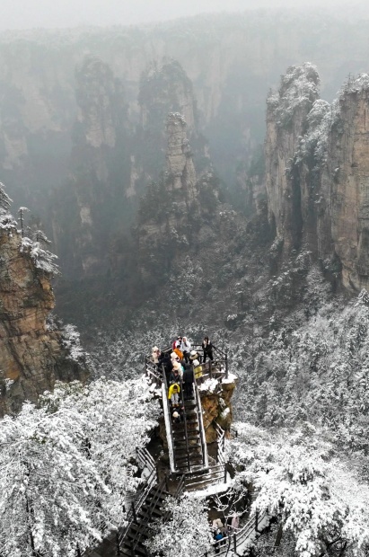 搭客在张家界国度丛林公园黄石寨景区游玩
