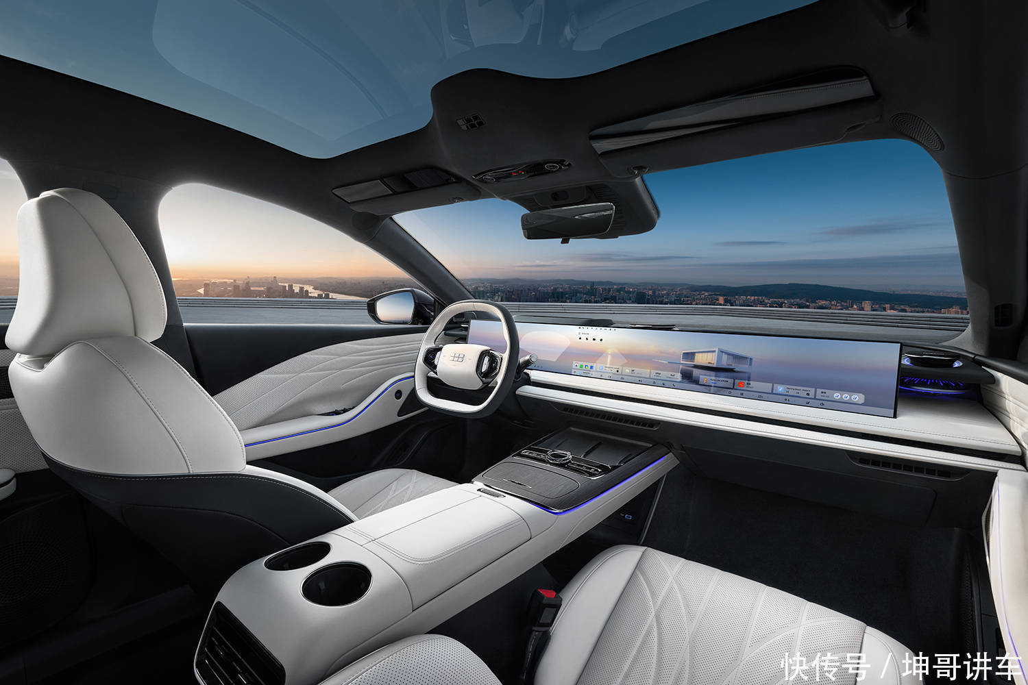 内饰方面,新车这次优化的重心是中控台下部区域,中央扶手区域看上去更平整,更具举座感。而尺寸达到45英寸的一时局屏幕依旧是最大亮点,其灵验显现区域尺寸达到1130mm*138mm,硬件部分聘任高通骁龙8295芯片。