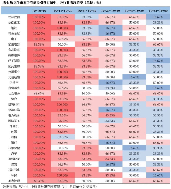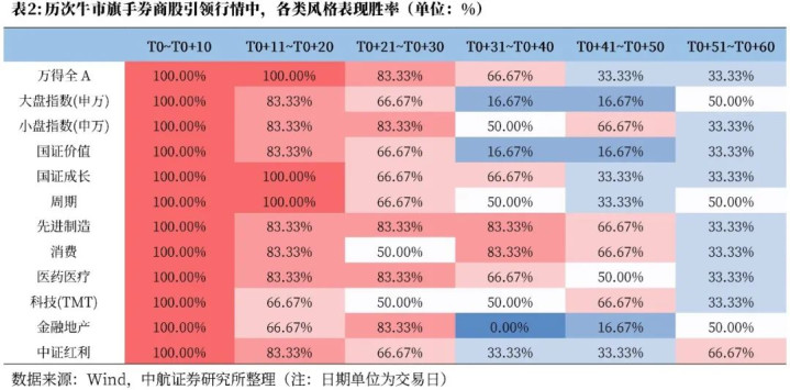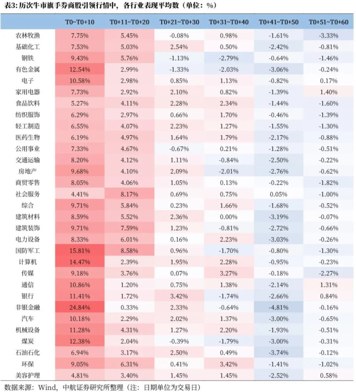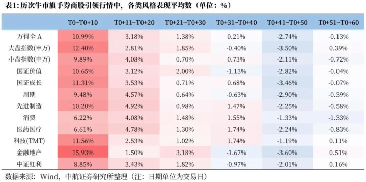 效果来看,券商领涨的牛市行情中,上证指数冲突阶段性高点后仍将捏续上升30~40走动日,全体上升幅度缓缓放缓,之后进行阶段性的轰动。格调方面,冲突后前十个走动日内大盘和金融地产格调弹性更大。连结赔率和胜率,扫数上升阶段小盘、先进制造格调上升的捏续性更强。分行业来看,冲突后前二十个走动日非银金融和国防军工弹性最大;连结赔率和胜率,电子和轮廓上升捏续性最强。