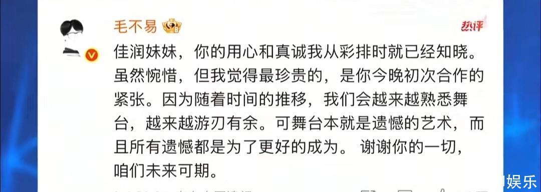 而毛不易的回复,则充满了前辈的和睦与步地,他写说念:“你的精心和诚实我从彩排时就照旧领路……舞台本便是缺憾的艺术……我们以前可期。” 这番谈话不仅是对作假的关怀,更是对一位新东说念主的深入勉励。