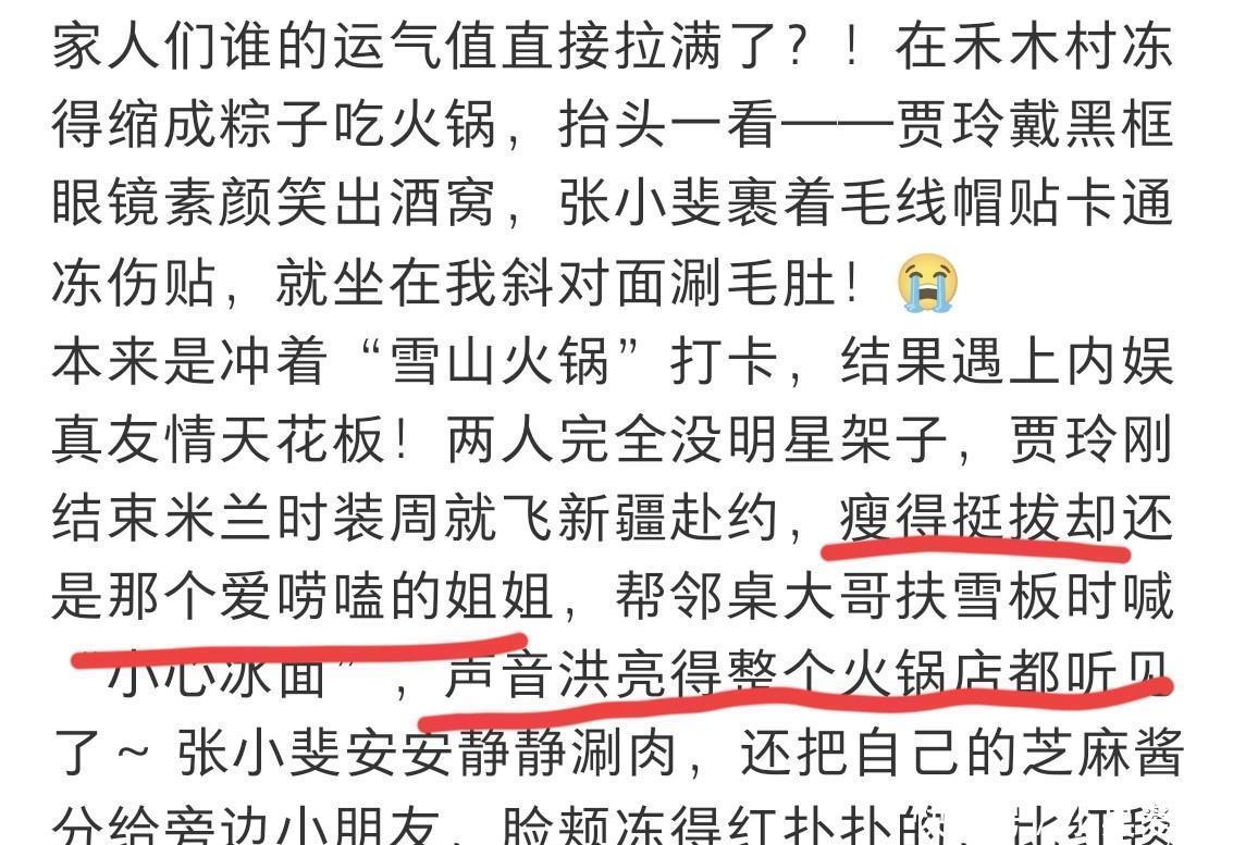 昨天有网友在新疆偶遇张小斐与贾玲聚餐,两东说念主在零下31度的天气吃暖锅,知友相处温馨冷静欧洲杯体育,互动细节甜度满满。