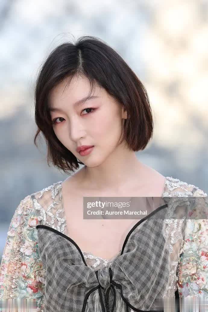周冬雨身着银白亮片蕾丝透视长裙,胸前防碍玄色格纹蝴蝶结,短发造型突显灵动感,作风会通甜酷与清凉。