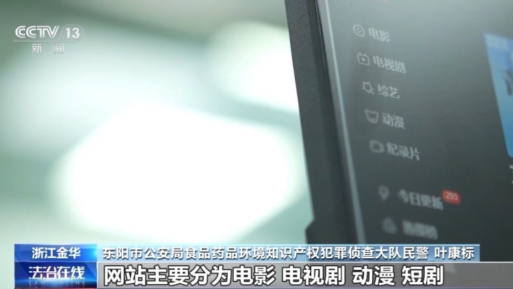 东阳市公安局食物药品环境学问产权造孽调查大队民警 叶康标:网站主要分为电影、电视剧、动漫、短剧、综艺节目等。除了一些热点的春节电影上映以后会出目下这些侵权网站外,还有近期热播的电视剧,王人莫得获取著述权东说念主许可大要版权方的许可,王人是违规算作。