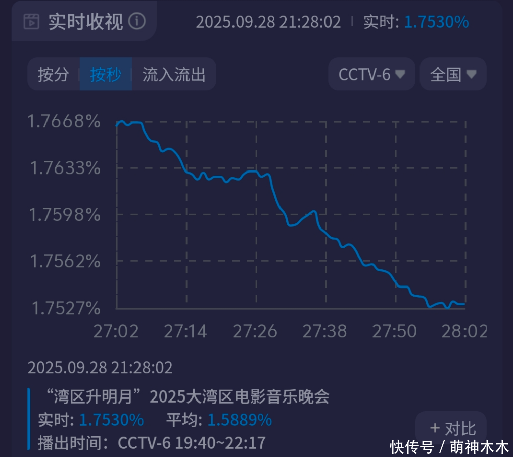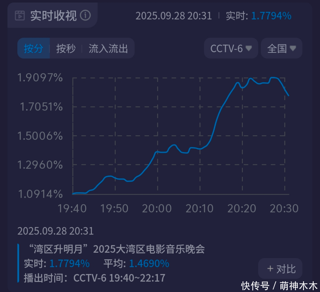 2025大湾区电影音乐晚会收视出炉了!似乎有点不足预期。