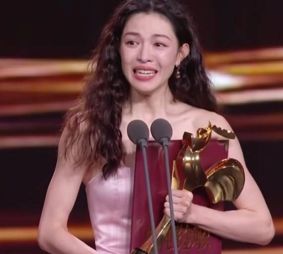 站在领奖台上的她,哭的泪如雨下,数次抽抽搭噎
