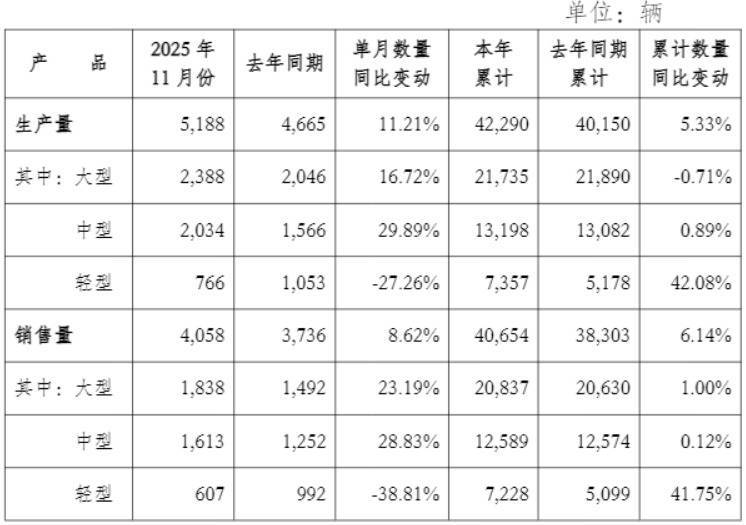 【大河财立方音讯】12月2日开yun体育网,宇通客车线路11月份产销数据快报。